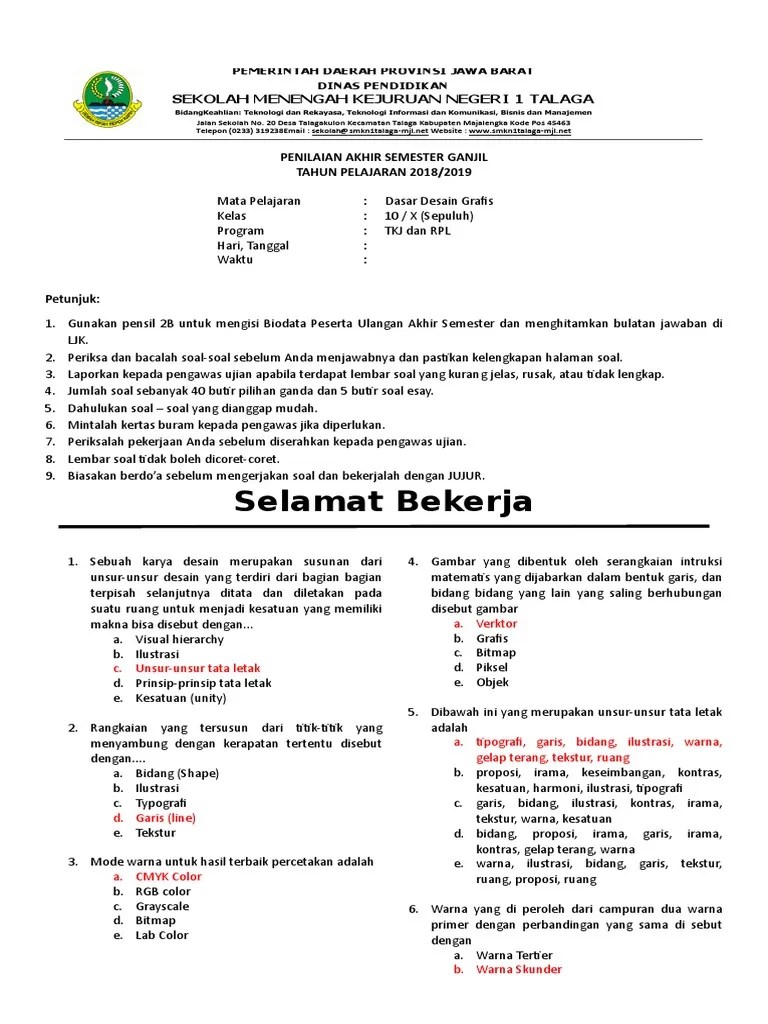 20200220 soal uas desain grafis kelas x semester 1 smk tkj rpl tahun pelajaran. Berikut, contoh soal pilihan ganda seni budaya kelas x semester 1 beserta jawabannya untuk siswa sma/sederajat. Kisi kisi dan contoh soal desain grafis kelas x smk. Kisi kisi soal ph kelas 3 tema 2 k13 revisi 2019 katulis. Format kisi soal uas 2016 desain grafis.